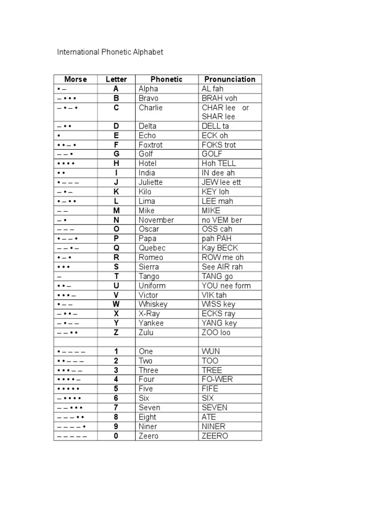 Learn to spell your name in morse code and send sos. Spelling alphabets, such as the nato phonetic alphabet, consists of a set of words used to stand for alphabetical letters in oral communication. Phonemic transcription uses phonemes to show the pronunciation of words. Template:selfref template:infobox writing system the international phonetic alphabet ( ipa ) is an alphabetic system of phonetic notation based primarily on the latin alphabet. International phonetic alphabet (ipa) symbols used in this chart. Nato uses the normal english numeric words (zero, one, with some alternative pronunciations), whereas the imo uses compound numeric words (nadazero. The international phonetic alphabet (ipa) is very important for learners of english because english is not a phonetic language. English pronunciation of the international phonetic alphabet.